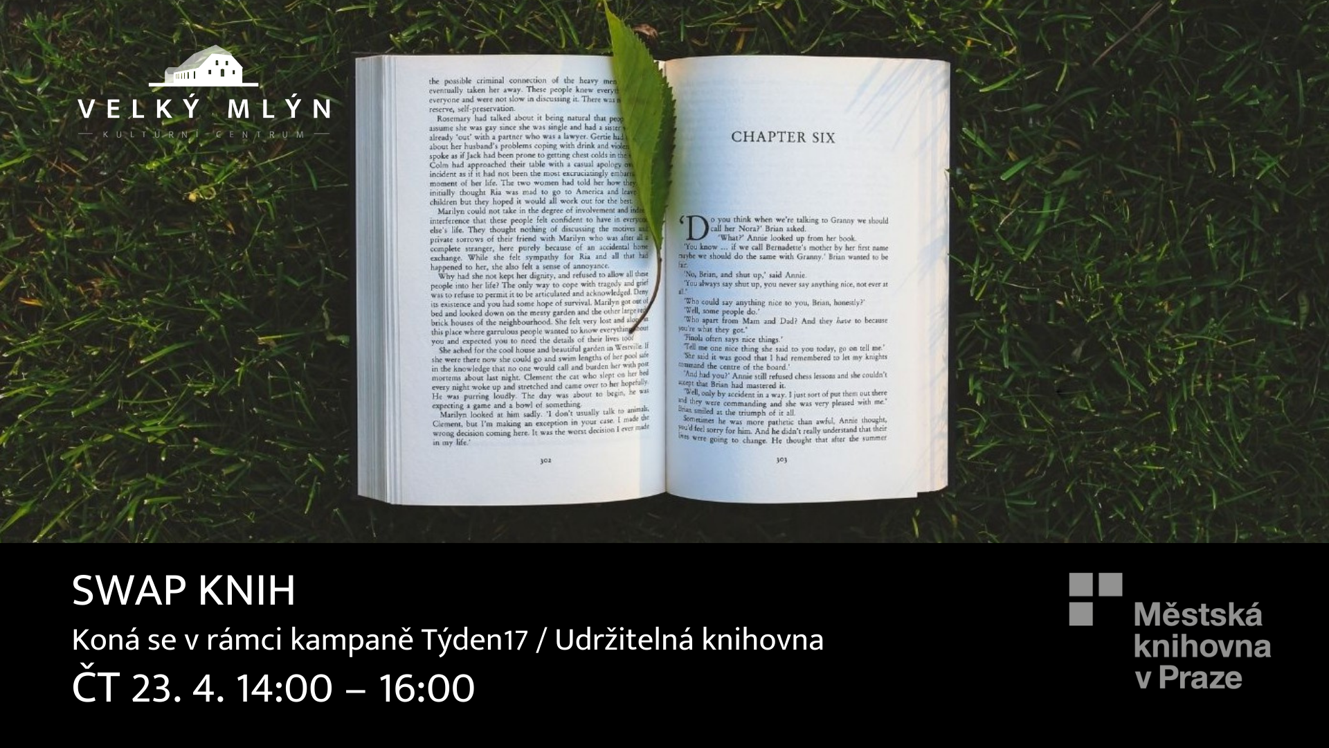 Koná se v rámci kampaně Týden17 / Udržitelná knihovna. Máte doma knihy, které nečtete? Přineste je na dubnový Swap knih a odneste si nové čtení! Přijďte si vyměnit knihy, potkat další milovníky literatury a dát příběhům druhý život – bez peněz, bez odpadu, s radostí. Místo: v klubovně. Vstup zdarma.