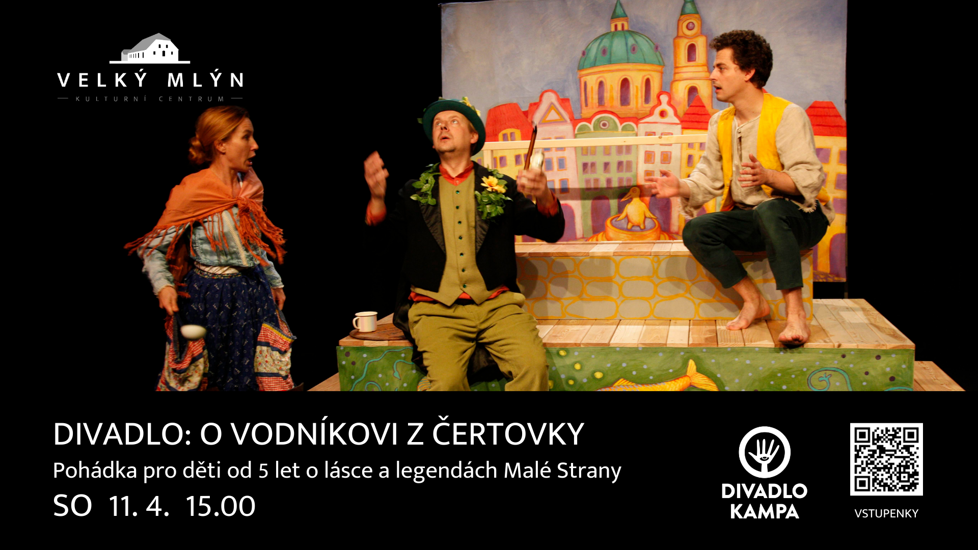 VSTUPENKY Podle staré pražské legendy žije v potoce Čertovka vodník Vrbina. Chcete se s ním setkat? Tak si přijďte poslechnout jeho vyprávění o velké lásce sirotka Aničky a mladého vodníka Vlnky, také o zlé tetě a kouzelném puškvorcovém elixíru. Hrají a zpívají: Anička - Agáta Dušková / Klára Jakubová Zlá teta a Mokřena - Pavla Drtinová / Ludmila …
