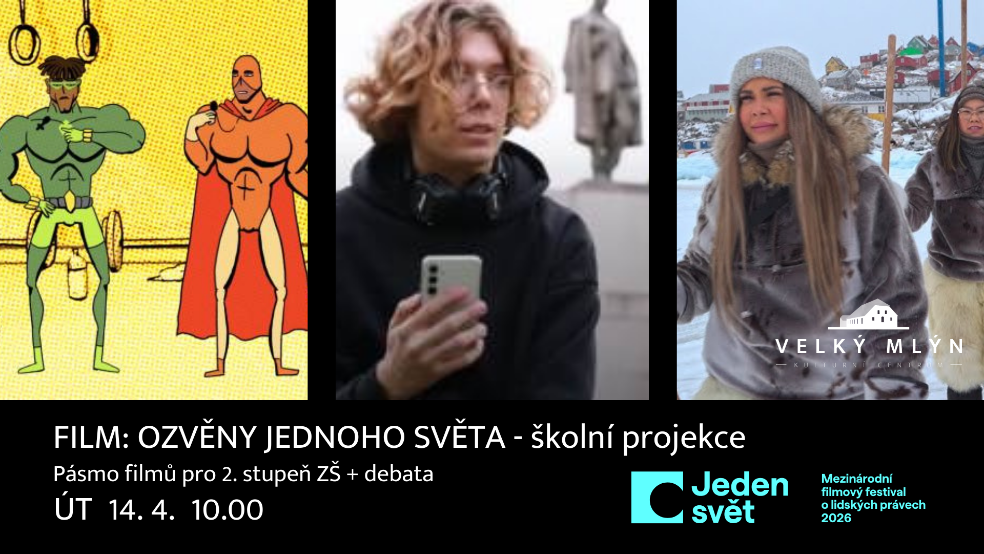Pásmo filmů pro 2. stupeň základních a 1. ročník středních škol (doporučený věk 13 - 16 let). PRŮŘEZOVÁ TÉMATA: osobnostní a sociální výchova, výchova k myšlení v evropských a globálních souvislostech, multikulturní výchova a environmentální výchova. Vstupné 90,- Kč V případě zájmu kontaktujte: produkce@velkymlyn.cz Projekce zahrnuje tři krátké dokumentární filmy, následuje debata s …